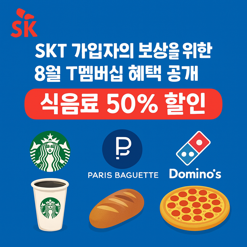 SK텔레콤이 고객 보상과 감사의 의미를 담아, 2025년 8월부터 ‘T멤버십 고객 감사제’를 시작합니다. 이번 혜택은 스타벅스, 파리바게뜨, 도미노피자 등 인기 브랜드들과 함께 식음료 최대 60% 할인 또는 무료 제공이라는 실질적인 구성으로 마련되었습니다.